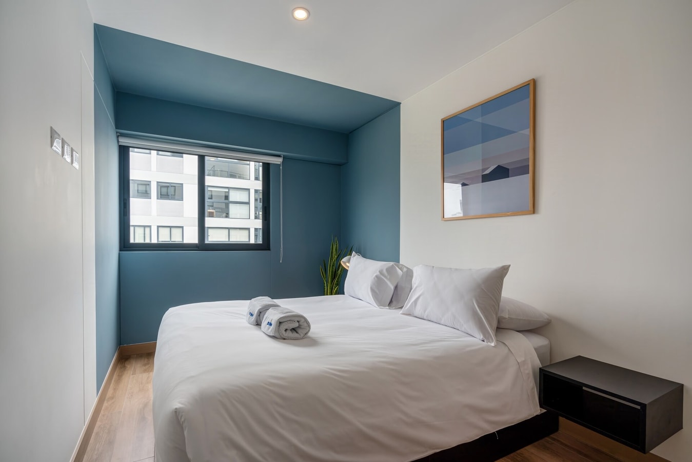 - Acceso a las áreas comunes del edificio: piscina en el rooftop con vistas increíbles; además de un área de coworking, servicio de lavandería y un gimnasio equipado.