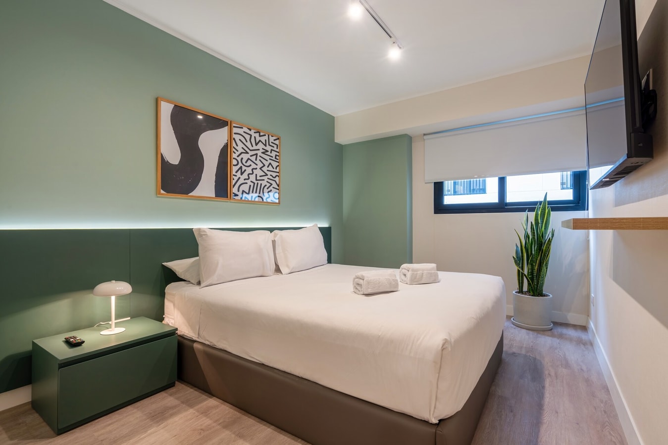 - Dormitorio equipado con una cómoda cama queen, smart TV y cortinas blackout.