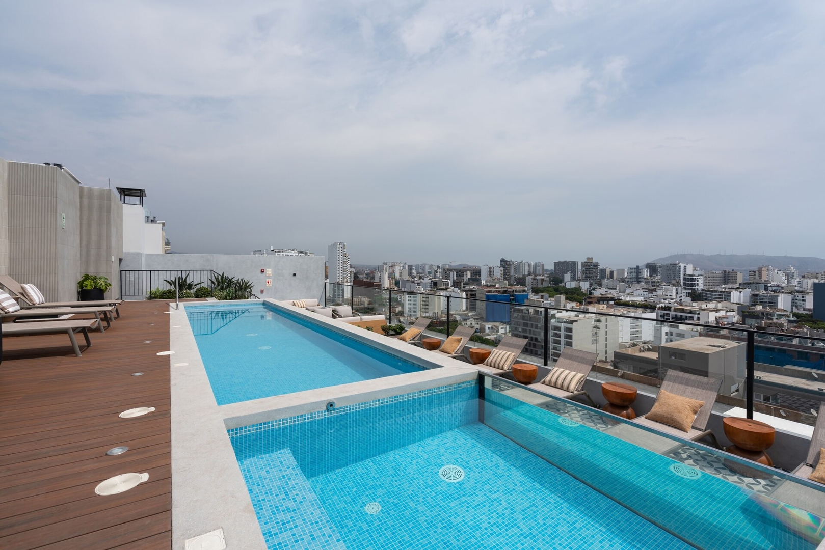 - Acceso a las áreas comunes del edificio: piscinaen el rooftop; además de un área de coworking, servicio de lavandería y un gimnasio.