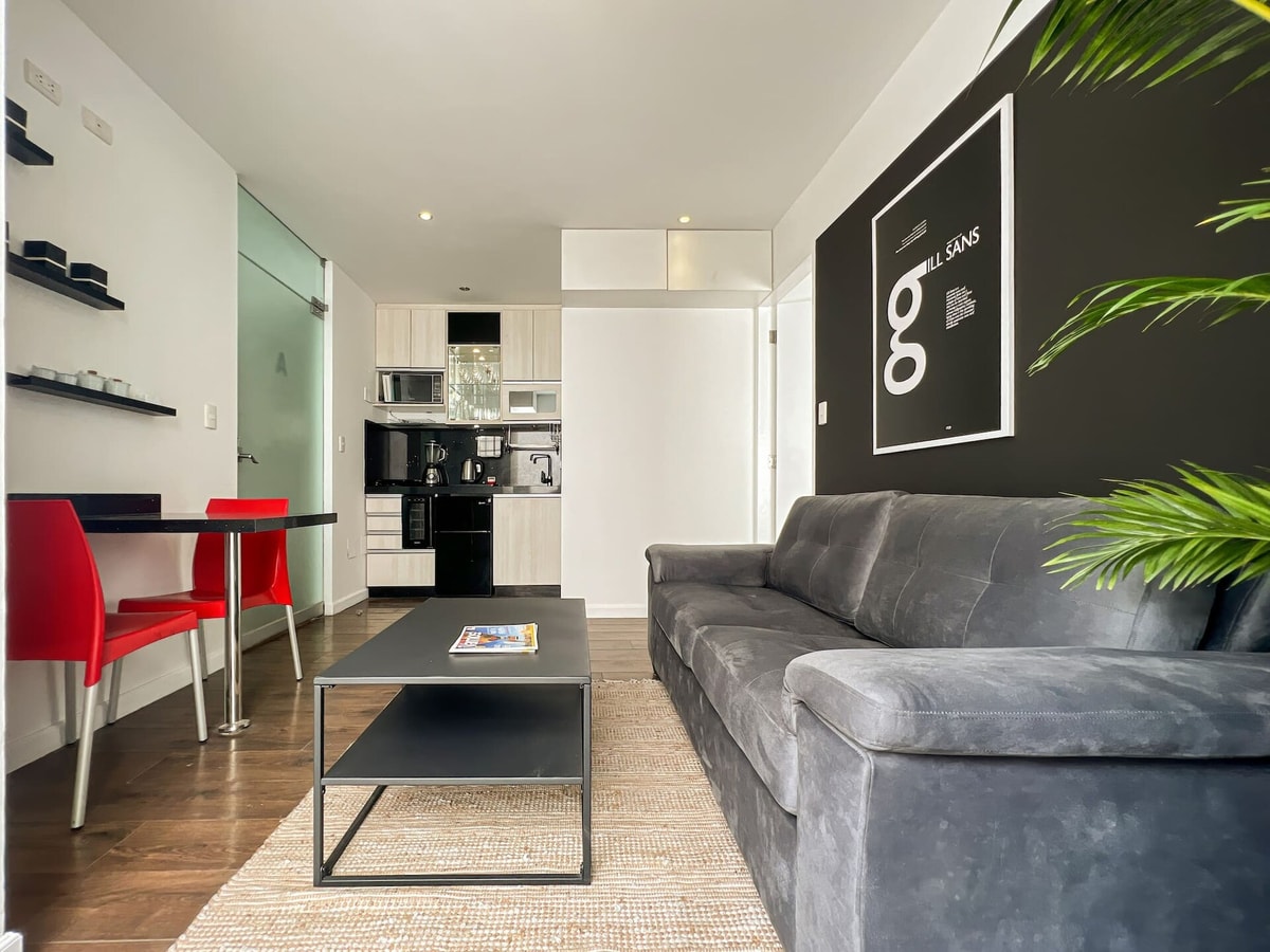 Disfruta de la experiencia de hospedarte en el corazón de Miraflores, a pasos del Parque Kennedy, rodeado de los mejores restaurantes, bares y cafés de la ciudad. Desde aquí tendrás fácil acceso al malecón y a Larcomar, ideales para pasear, ejercitarte o disfrutar de una vista única del mar. Este departamento ofrece un ambiente moderno, bien distribuido y diseñado para tu comodidad y descanso. Su ubicación privilegiada permite recorrer a pie uno de los distritos más vibrantes de Lima.