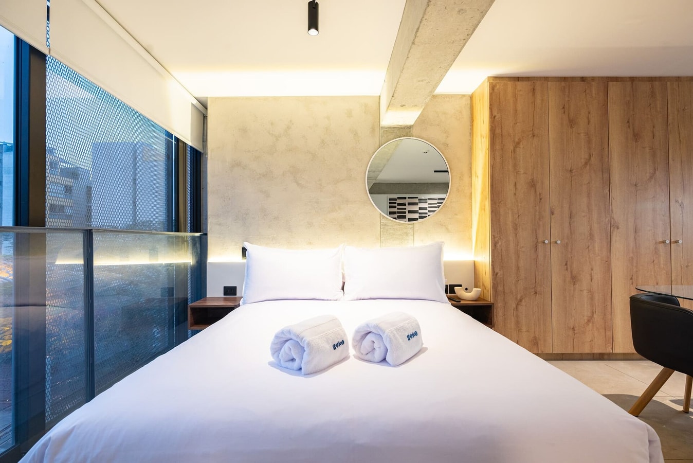 - Cómoda cama queen, smart TV y cortinas blackout.