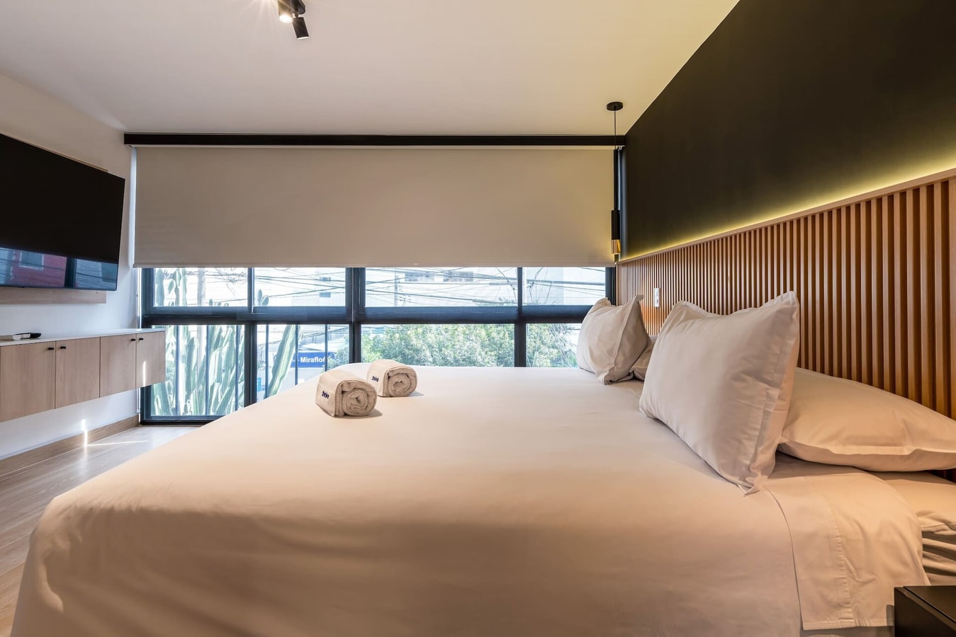 This spacious flat apartment is elegantly designed with high-end finishes and offers all the amenities you need for an unforgettable stay, including high-speed WiFi, air conditioning, 60”QLEDTV, drinking water filter, king-size bed and italian coffee maker! Perfect for those seeking space, comfort and sophistication in one of Lima’s most vibrant neighborhoods.”