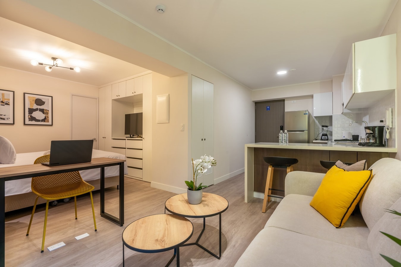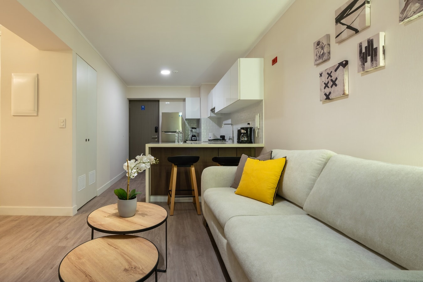 - Acceso a las áreas comunes del edificio: piscina en el rooftop; además de un área de coworking, servicio de lavandería y un gimnasio.