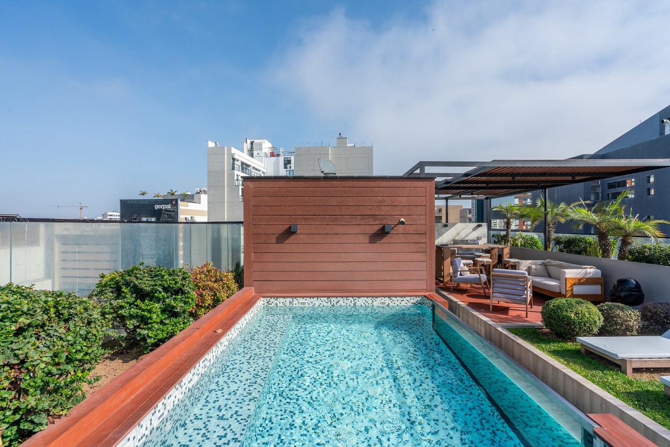 - Acceso a las áreas comunes del edificio: piscina en el rooftop y un gimnasio equipado.