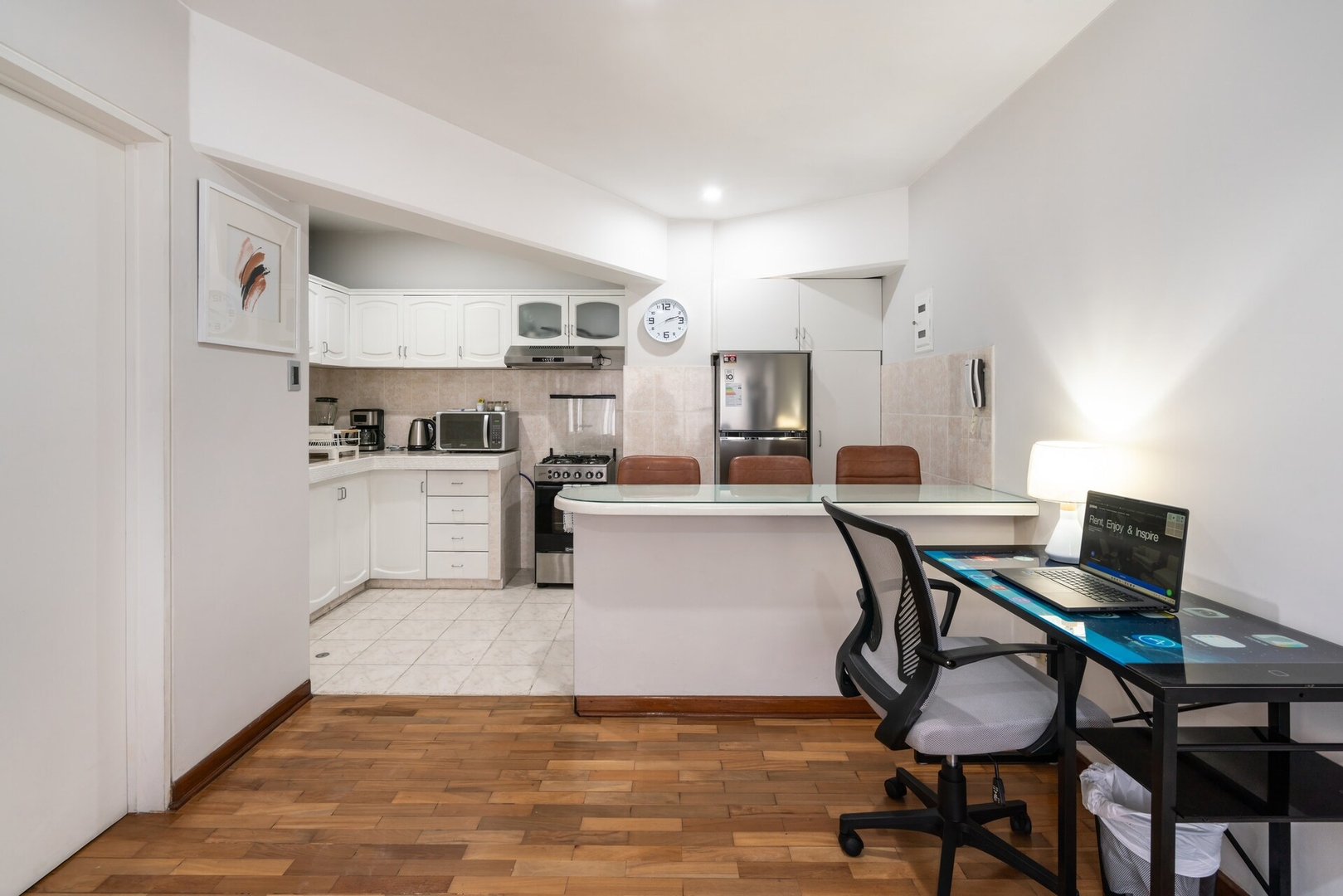 Disfruta del ambiente bohemio de Miraflores en este moderno apartamento de 1 dormitorio, a pocos pasos del Malecón, los mejores restaurantes y Larcomar. Ideal para parejas o viajeros de negocios que buscan estilo, confort y buena energía. Disfrute de la cocina totalmente equipada, acogedora sala de estar, Smart TV y WiFi rápido. Reserve ahora y experimente lo mejor de Lima desde Miraflores!