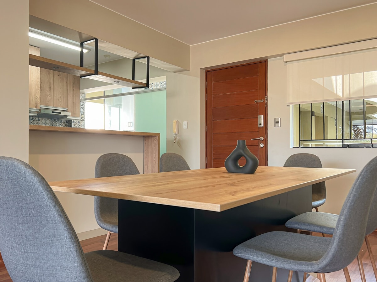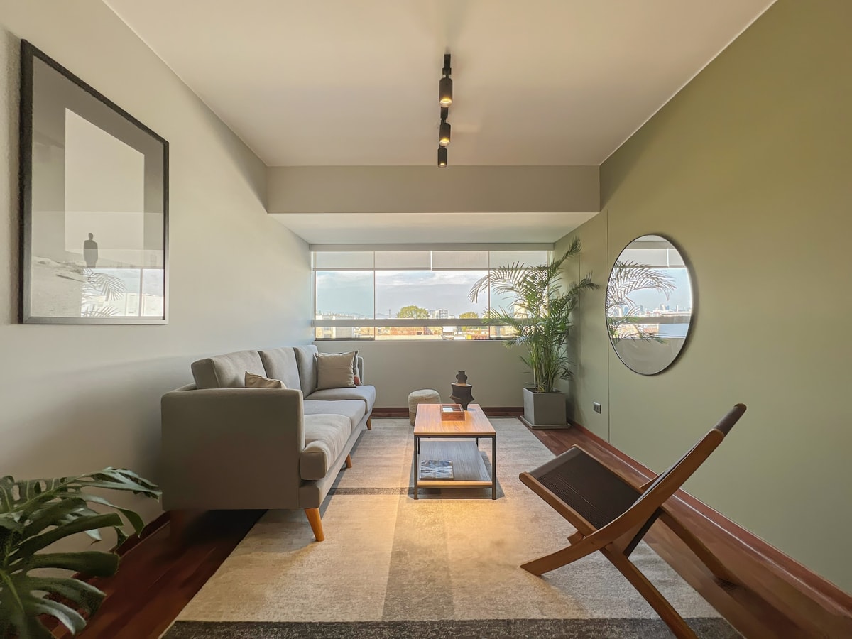 Experimente el ambiente bohemio de Miraflores desde este moderno departamento de 3 dormitorios, a pocos pasos del Malecón, los mejores restaurantes y el centro comercial Larcomar. Ideal para familias, grupos de amigos o viajeros de negocios que buscan estilo, confort y buena energía. Disfrute de la cocina totalmente equipada, acogedora sala de estar, Smart TV y WiFi rápido. Reserve ahora y experimente lo mejor de Lima desde Miraflores!