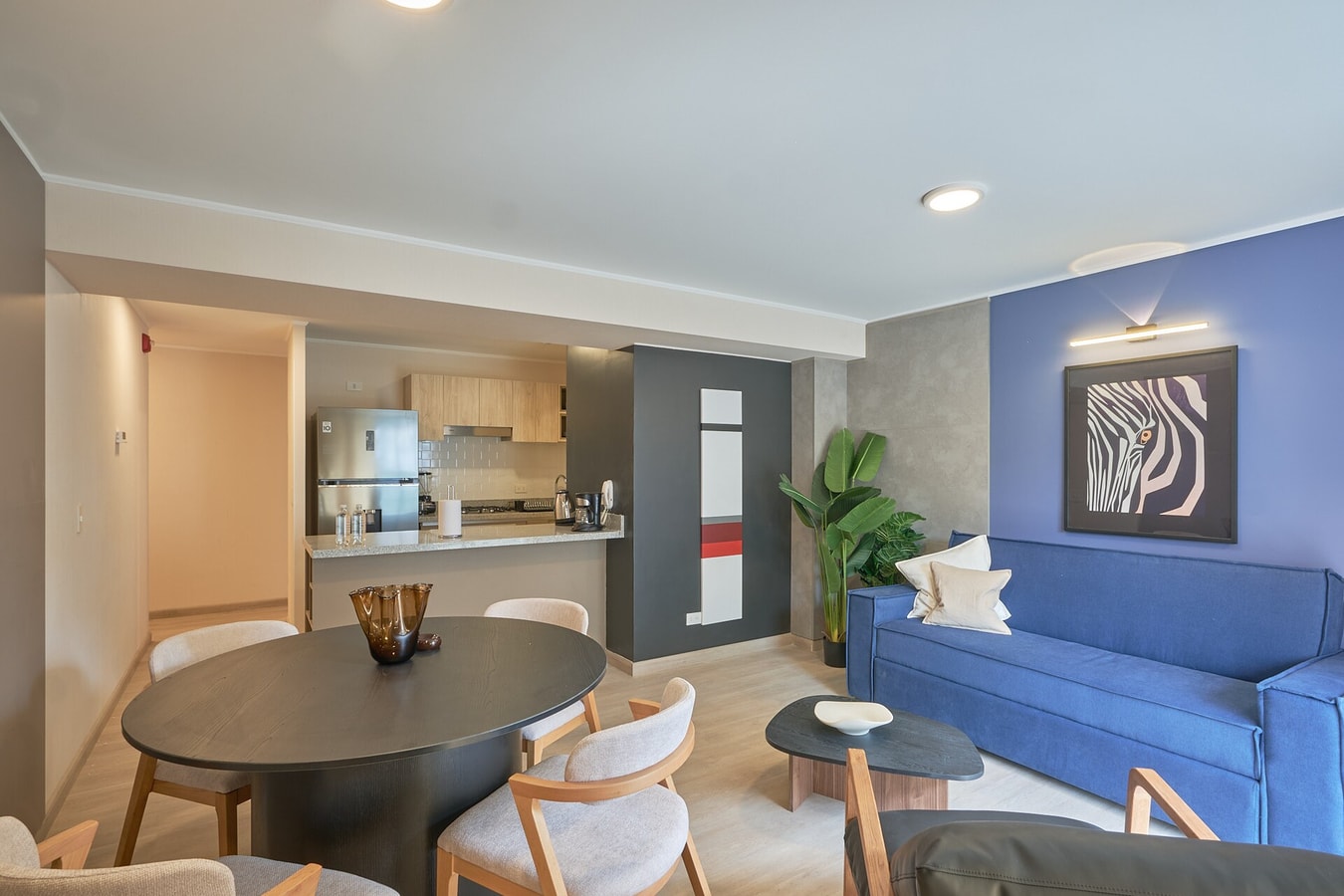- Acceso a las áreas comunes del edificio: piscina en el rooftop; además de un área de coworking y gimnasio.